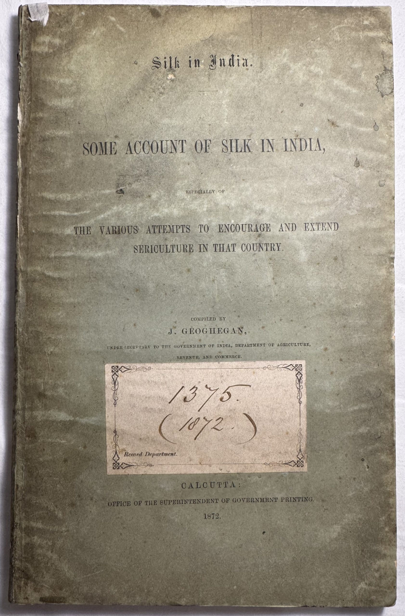 Publisher: Office of the Superintendent of Government Printing, Calcutta, 1872.